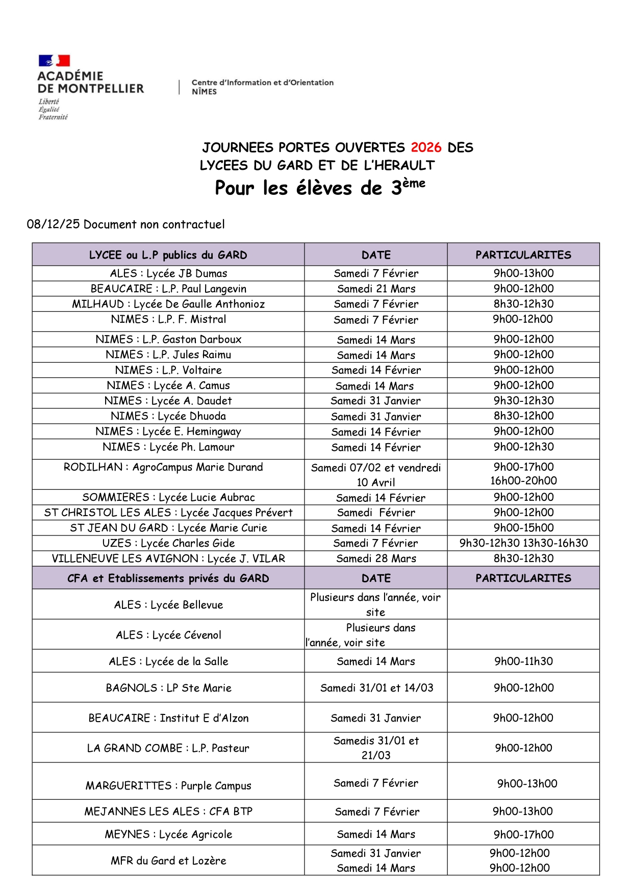 Journées Portes Ouvertes Lycées Gard & Hérault